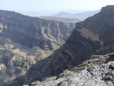 Danach geht es zum Jabal Shams, dem höchsten Berg in Oman (3.009 m), um dort das Wadi Ghul, den „Grand Canyon vom Oman“, zu sehen. Die Felsen fallen bis zu 1000 m zum Talboden teils senkrecht ab – atemberaubend!
